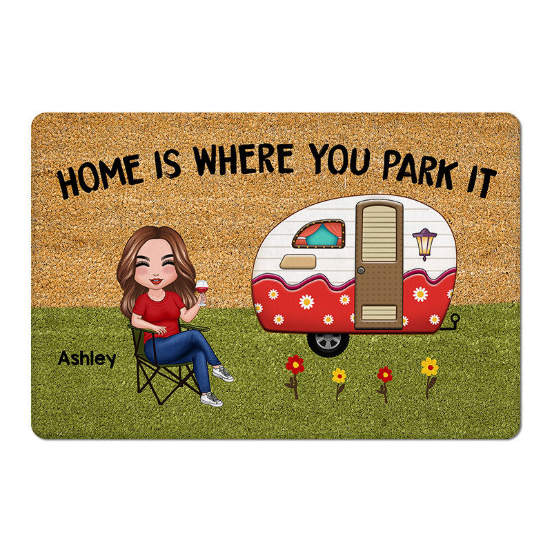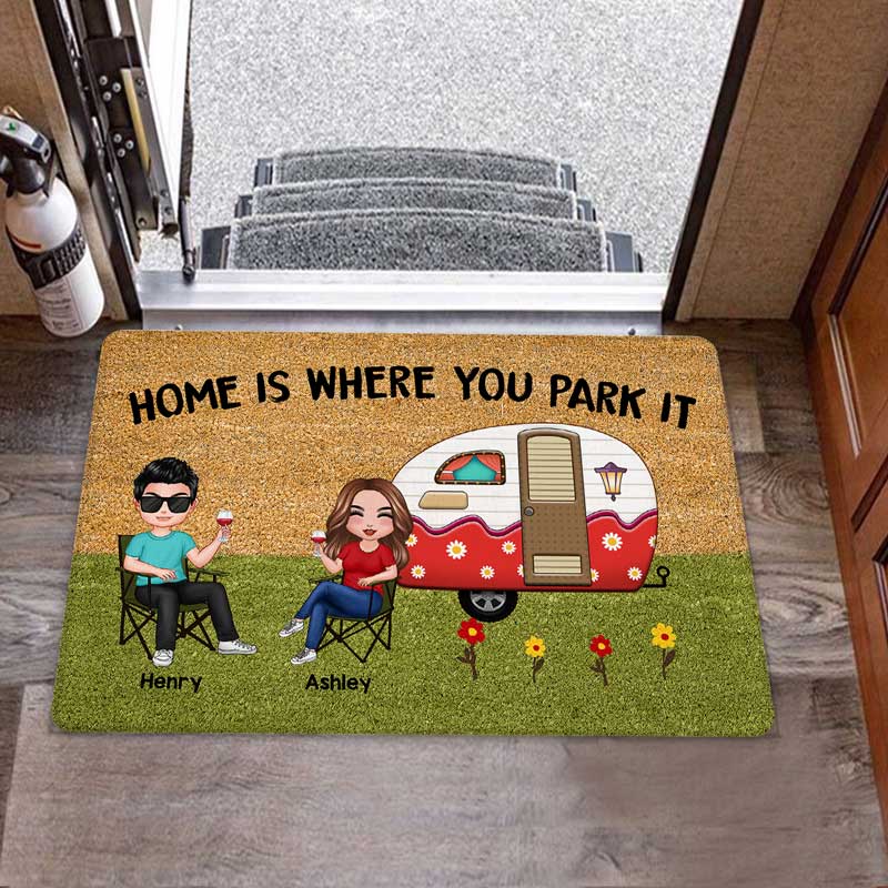 Beautiful Doll Camping Couple Single Man Woman Friends Personalized Doormat