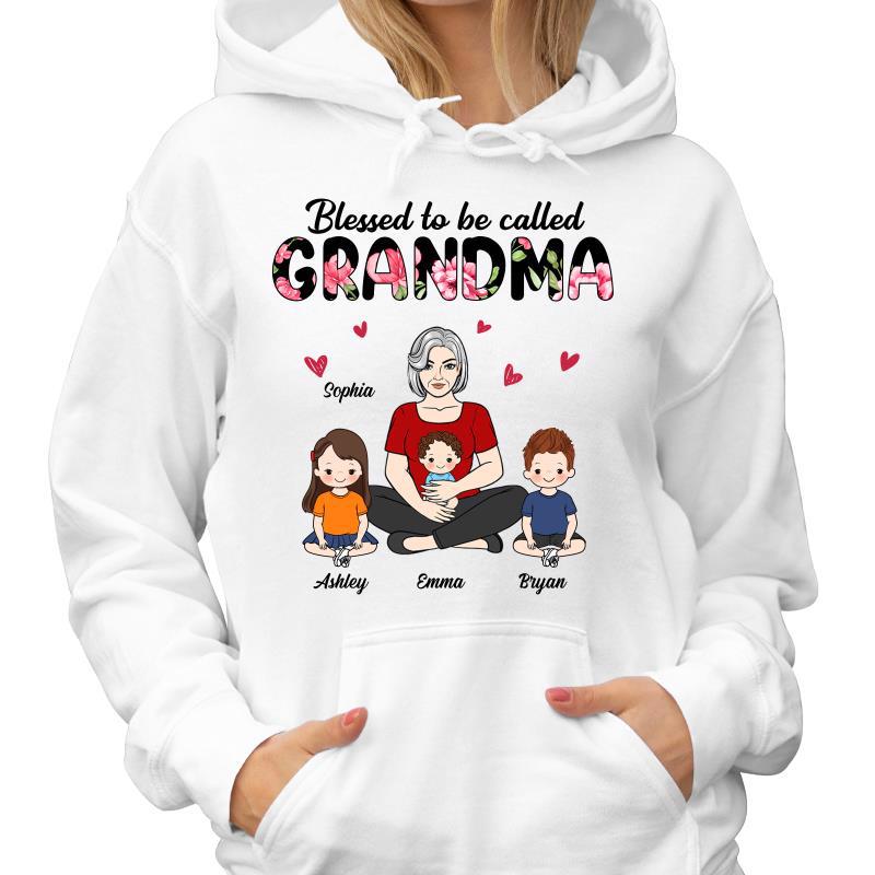 Blessed To Be Called Grandma Woman Sitting Personalized Hoodie Sweatshirt