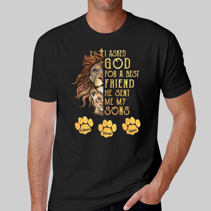 Dad Asked God For Best Friend Angel Lion Personalized Shirt