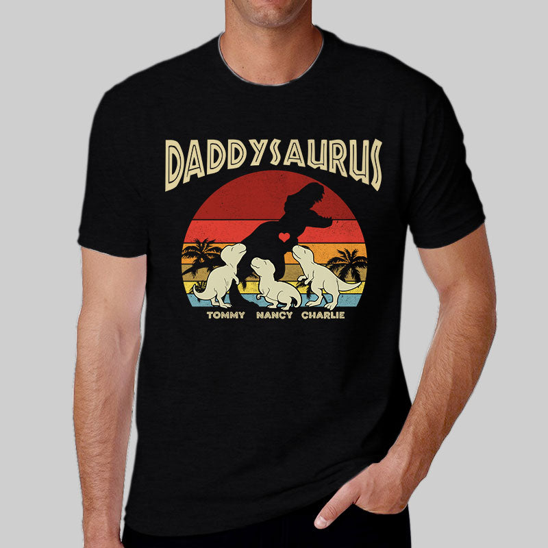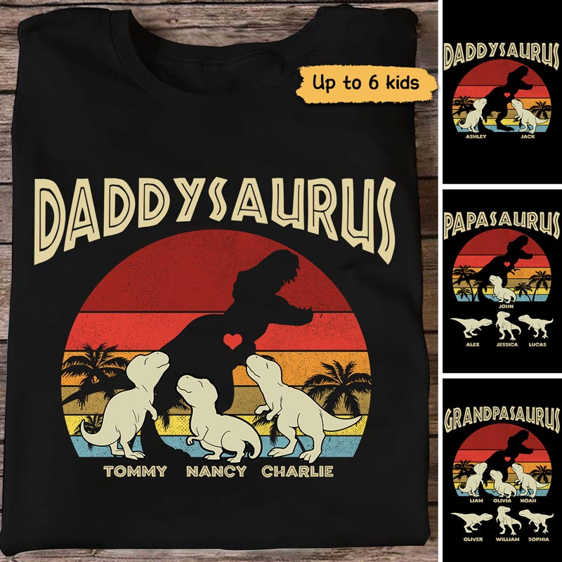 Daddysaurus Grandpasaurus Retro Summer Personalized Shirt