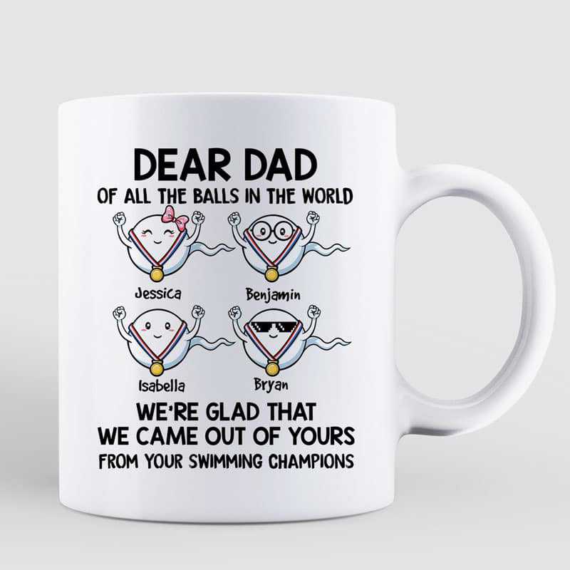 Dear Dad Swimming Champions Little Cute Kids Father‘s Day Gift Personalized Mug