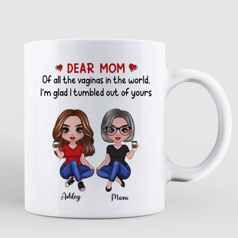 Dear Mom I‘m Glad I’m Tumbled Out Of Yours Doll Women Sitting Personalized Mug