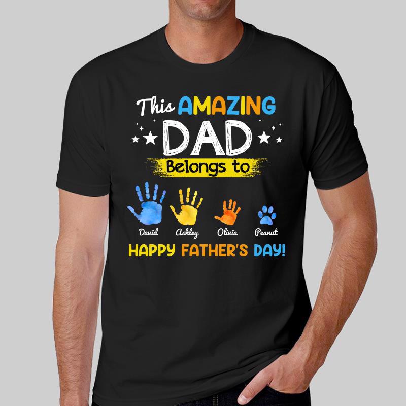Galaxy Amazing Dad Belongs To Hand Print Happy Father‘s Day Personalized Shirt
