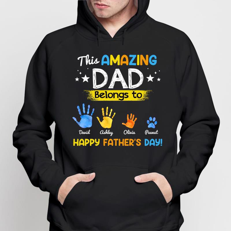 Galaxy Amazing Dad Belongs To Hand Print Happy Father‘s Day Personalized Hoodie Sweatshirt