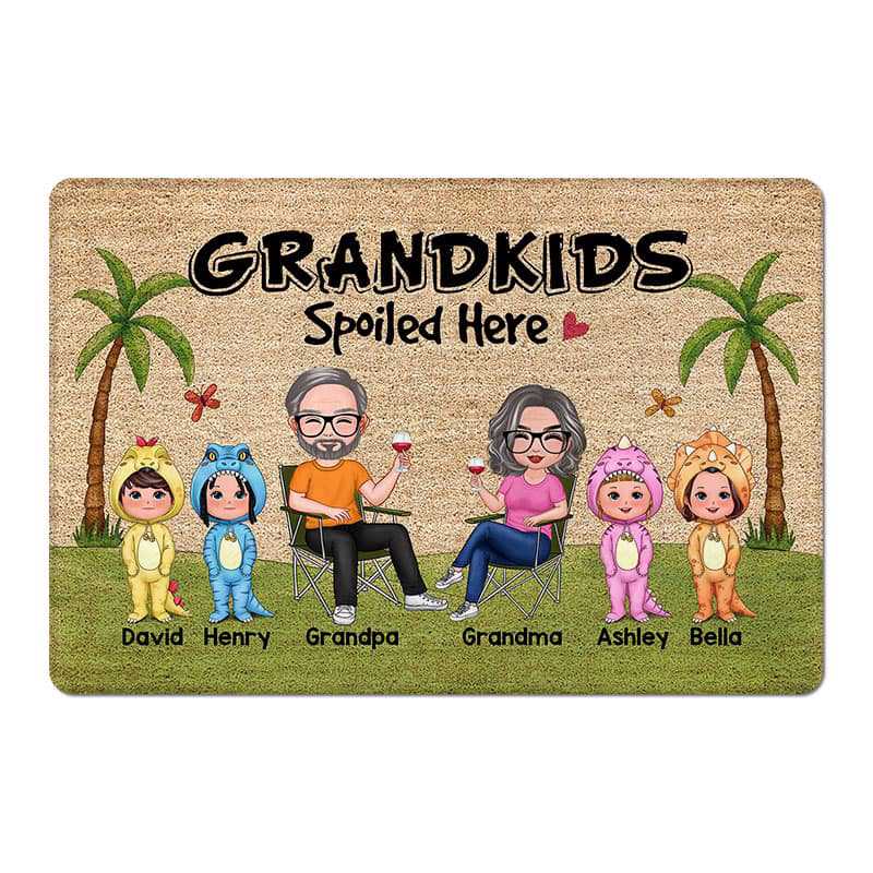 Grandkids Spoiled Here Cute Dinosaur Doll Personalized Doormat