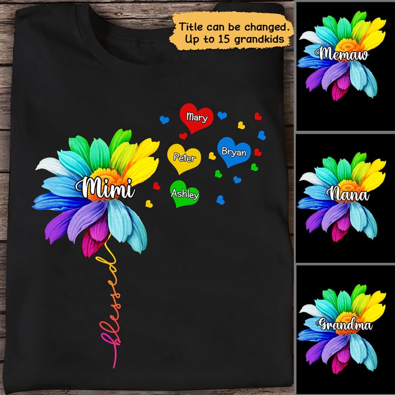 Grandma Dandelion Colorful Flower Personalized Shirt (1-8)