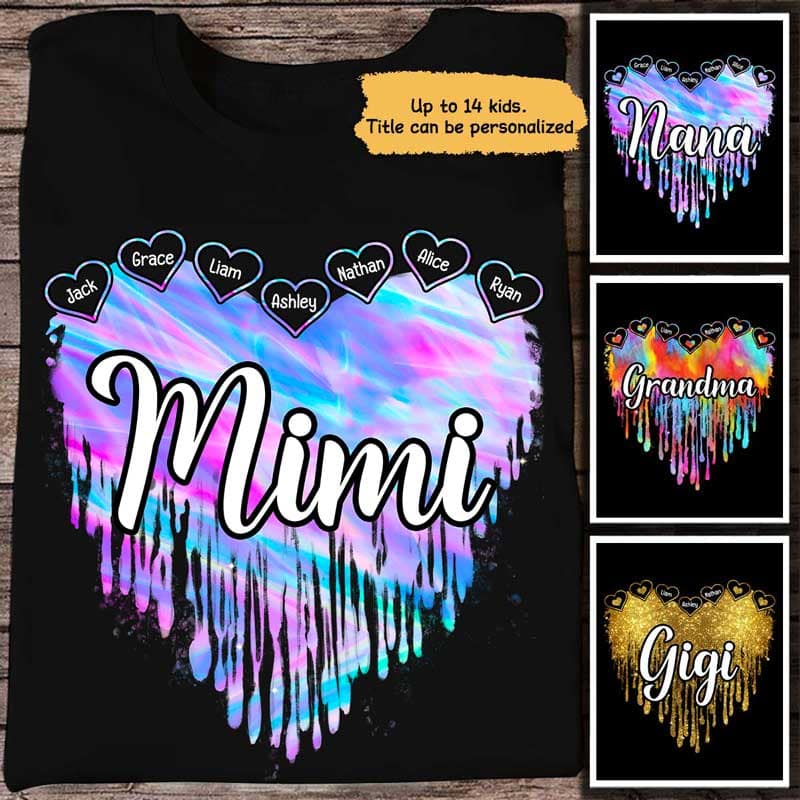 Grandma Melting Colorful Heart Galaxy Patterns Personalized Shirt