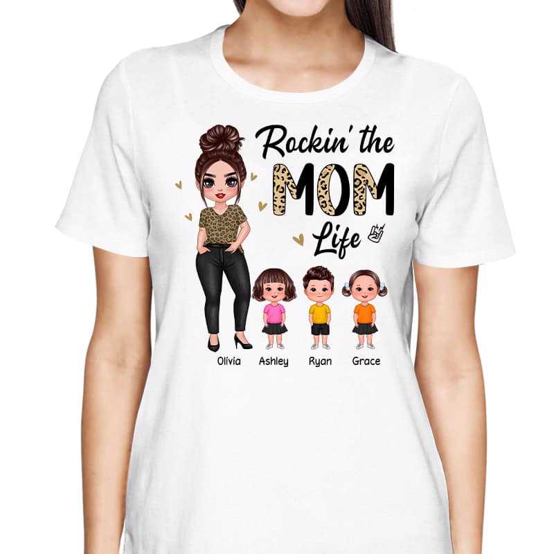 Half Leopard Rockin‘ The Mom Grandma Auntie Life Doll Woman Personalized Shirt