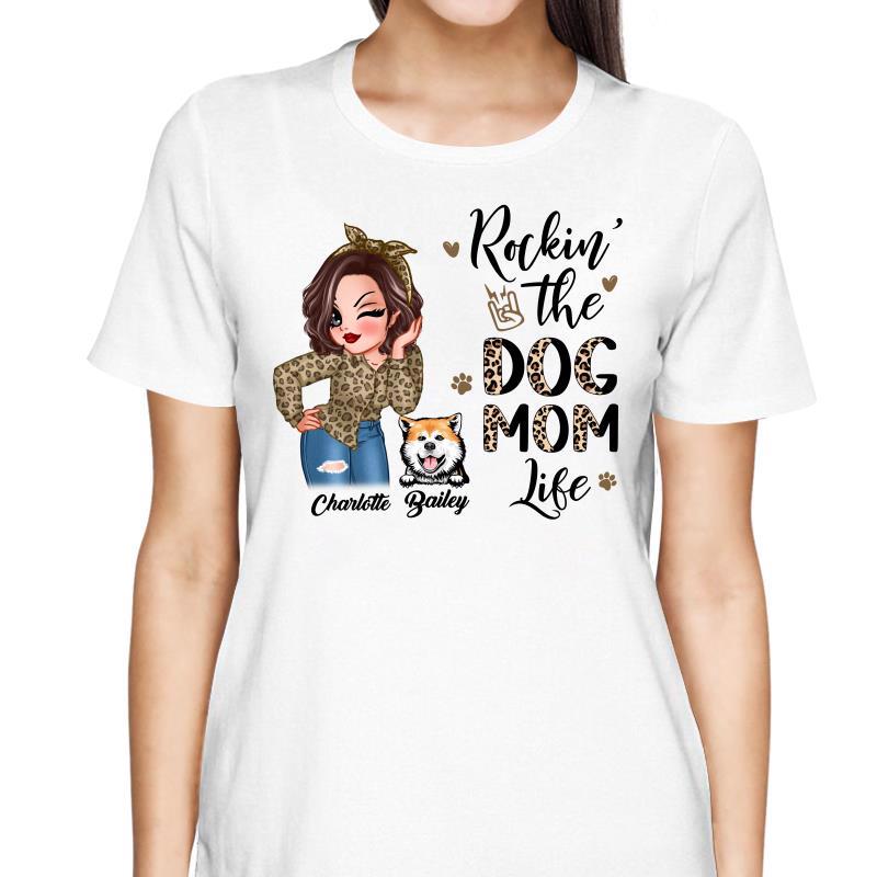 Half Leopard Sassy Woman Rockin‘ The Dog Mom Life Personalized Shirt