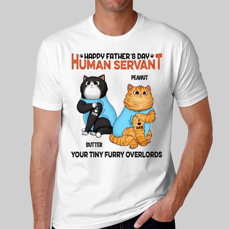 Happy Father‘s Day Human Servant Tattooed Cats Personalized Shirt