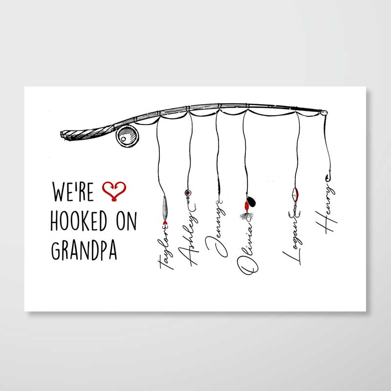Hooked On Grandpa Fishing Personalized Horizontal Poster