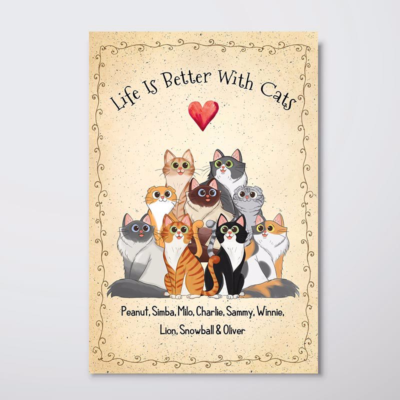 Life Is Better With Cats Sitting Cartoon Personalized Vertical Poster