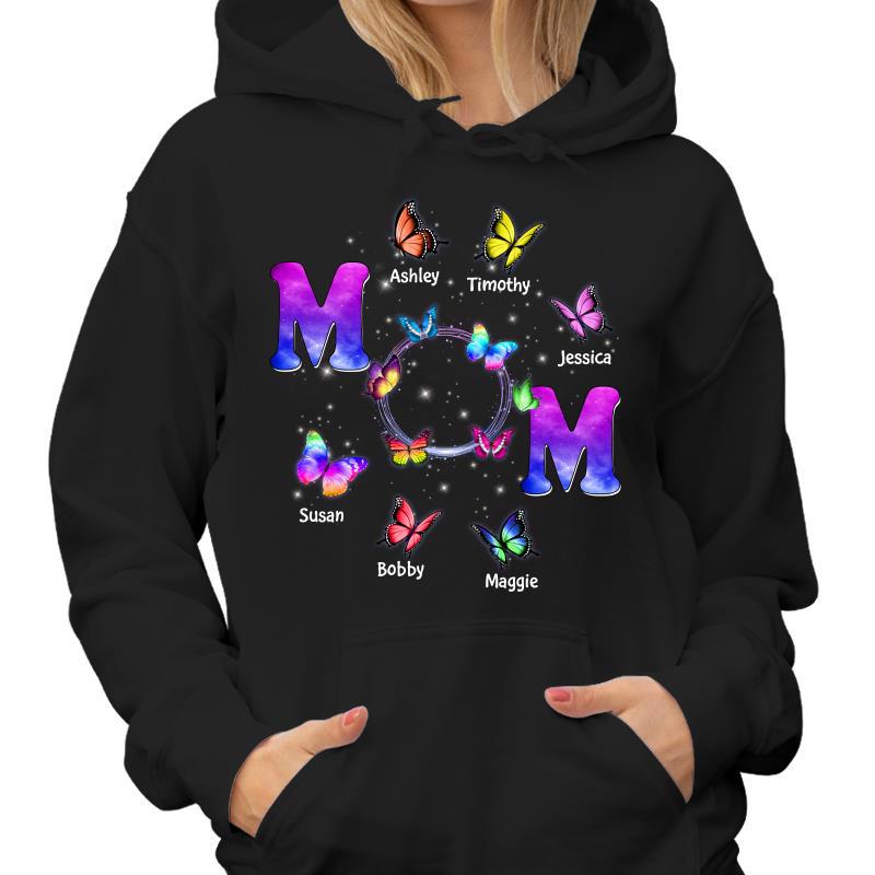 Mom Galaxy Butterflies Personalized Hoodie Sweatshirt