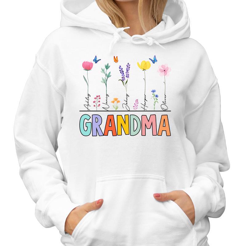 Mom Mama Grandma Flower Personalized Hoodie Sweatshirt