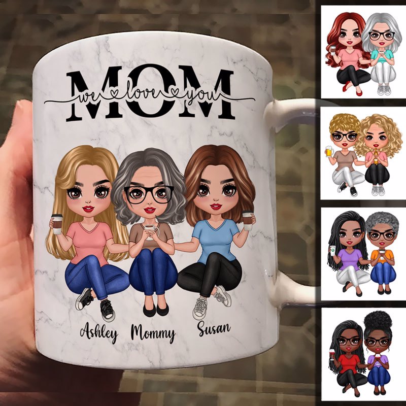 Mom We Love You Marble Texture Doll Women Sitting Personalized Mug