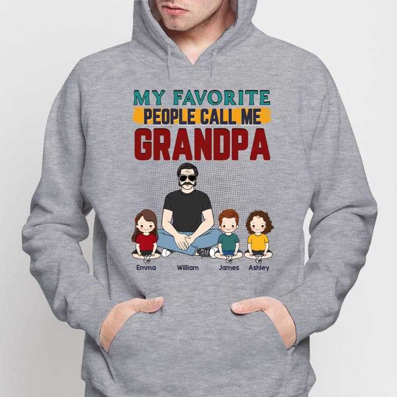 Old Man Sitting With Kids Favorite People Call Me Grandpa Personalized Hoodie Sweatshirt