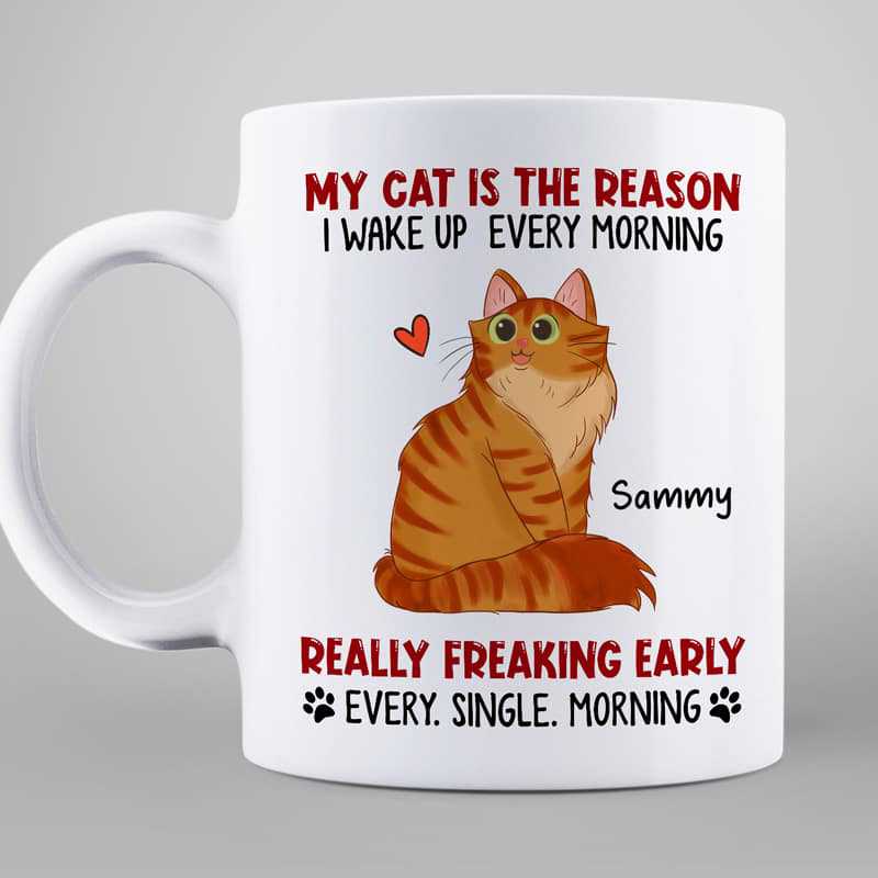 Reasons Wake Up Early Sitting Cartoon Cat Personalized Mug