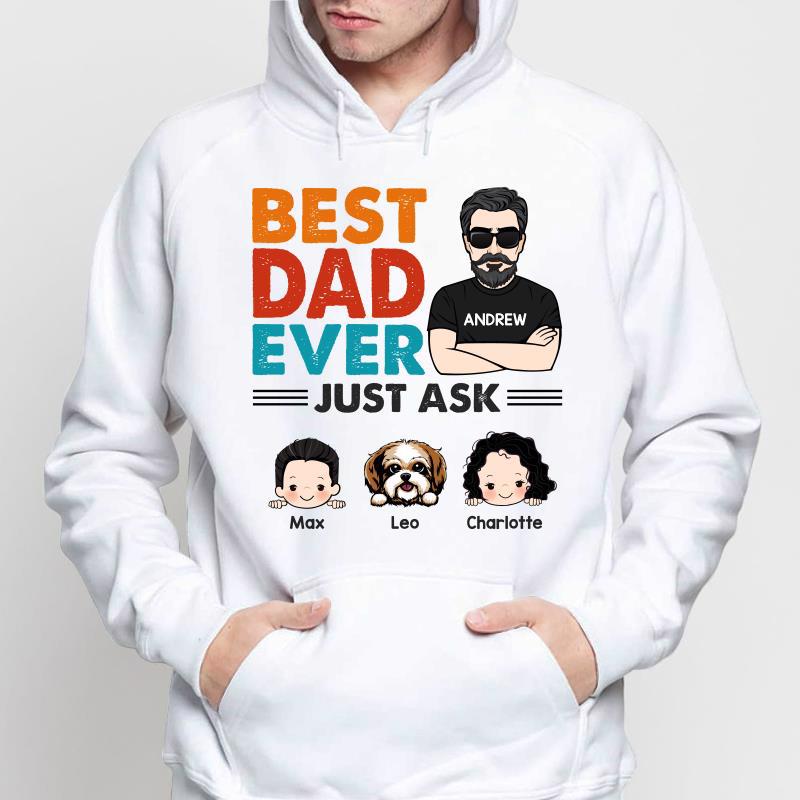 Retro Best Dad Ever Just Ask Kids Dogs Cats Personalized Hoodie Sweatshirt