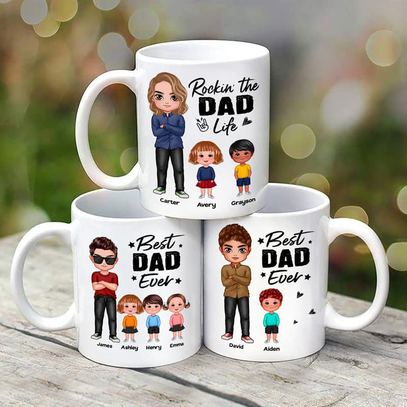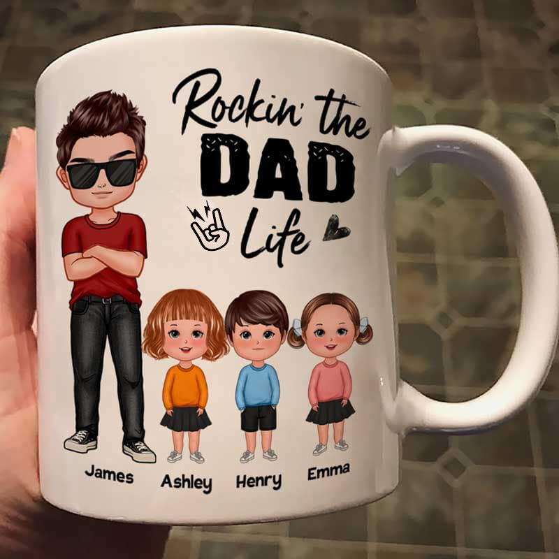 Rockin‘ The Dad Life Doll Dad With Kids Father’s Day Gift Personalized Mug