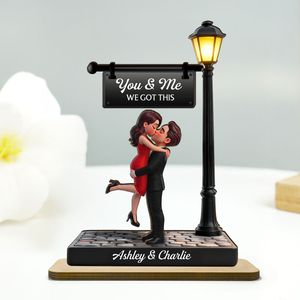 Capture a tender moment that speaks volumes about love and commitment. This personalized 2-layered wooden plaque features a romantic couple embracing under a glowing lamp post, symbolizing warmth, guidance, and standing together through every season. Customized with names and a meaningful message, this printed keepsake turns a simple scene into a powerful reminder that no matter what lies ahead, you’ve got each other. A beautiful way to celebrate love for anniversaries, weddings, or heartfelt everyday décor.