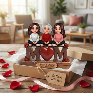 Celebrate the unbreakable bond between a mother and her children with this beautifully crafted personalized wooden plaque. Designed with a heartfelt “MOM” motif, delicate rose accents, and adorable character figures, this 2-layered plaque symbolizes love, warmth, and togetherness. Personalized with names, it becomes a meaningful keepsake Mom will cherish every day.