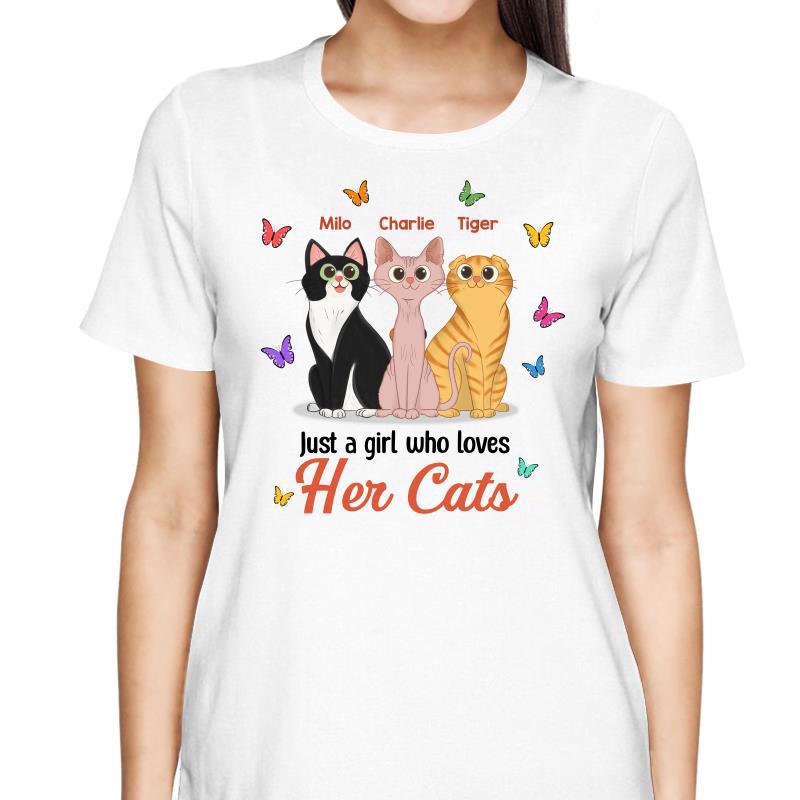 Sitting Cartoon Cats Butterflies Personalized Shirt