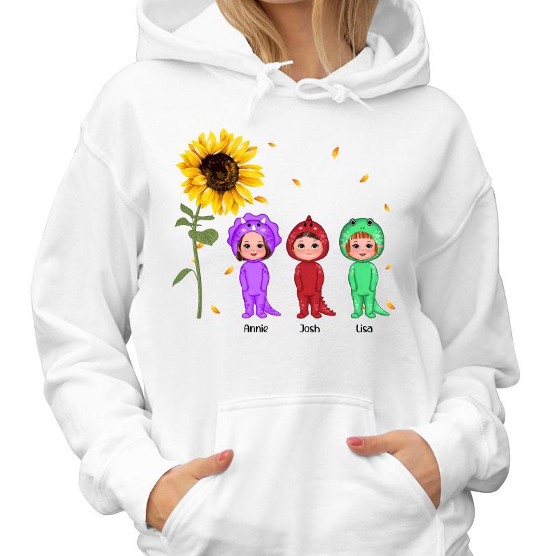Sunflower Dinosaur Kids Personalized Hoodie Sweatshirt