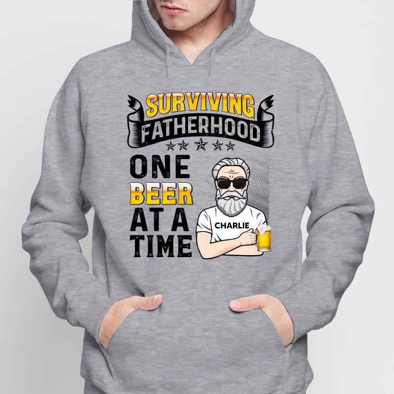 Surviving Father Hood Beer Gift For Dad Personalized Hoodie Sweatshirt