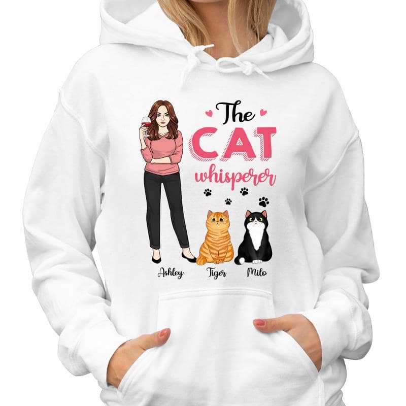 The Cat Whisperer Fluffy Cat & Drinking Woman Personalized Hoodie Sweatshirt