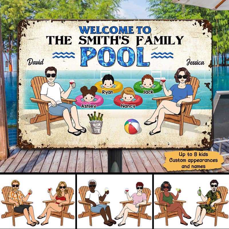 Welcome To Family Pool Sign Summer Personalized Metal Sign
